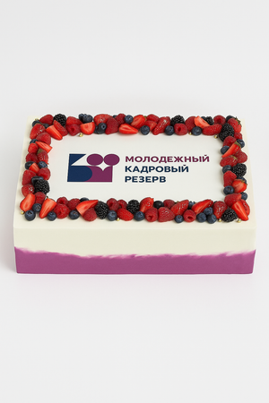 A classy Cream cake topped with fresh berries and a personalised edible logo, perfect for corporate celebrations and special milestones.