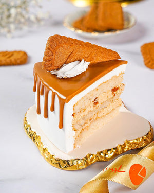 Caramelised Biscoff sponge layered with creamy mousse and topped with a signature biscuit.